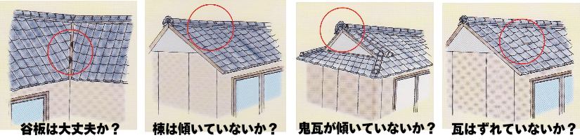 長い年月、屋根の痛みをチェックしていない場合は、一度瓦屋根診断技士にみてもらいましょう。